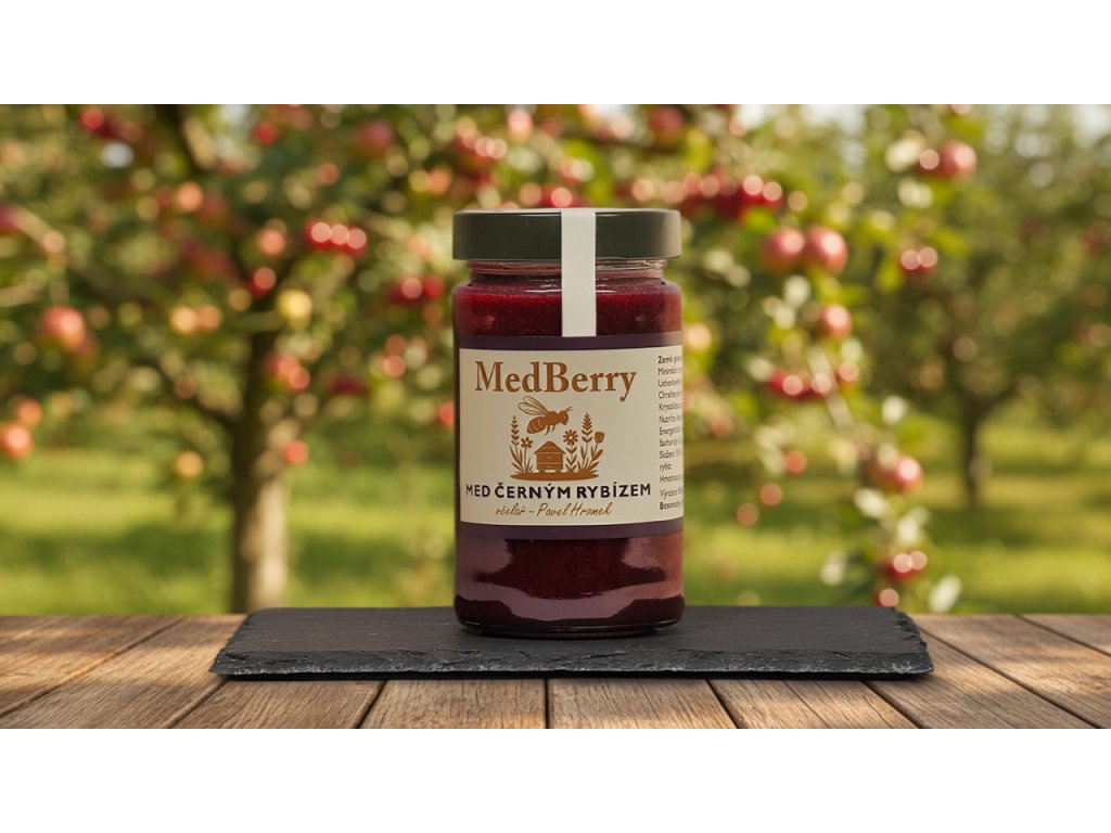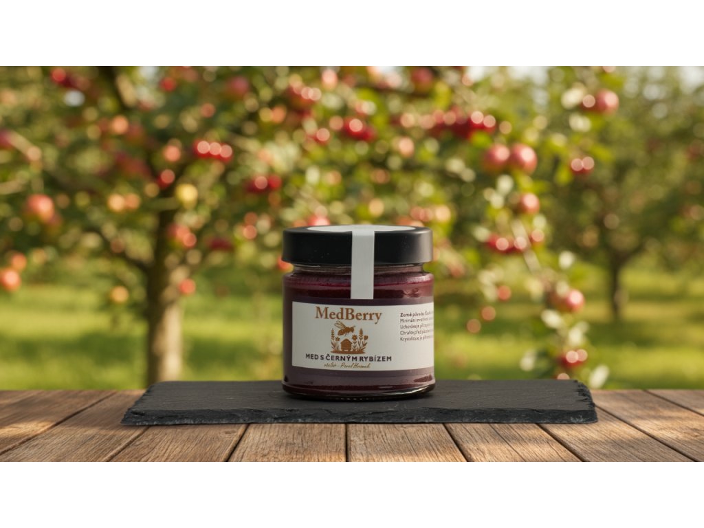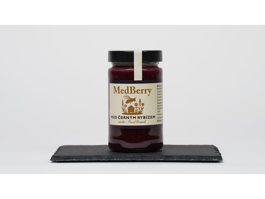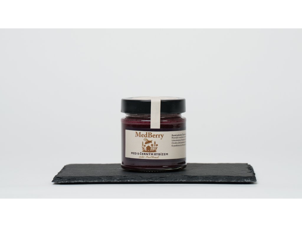 Med s černým rybízem je originální spojení kvalitního pastovaného květového medu (95 %) a lyofilizovaného černého rybízu (5 %). Tento produkt pochází přímo od včelaře, bez umělých přísad či konzervantů. Díky šetrné lyofilizaci si rybíz zachovává svou typickou chuť, barvu a vysoký obsah vitamínu C.