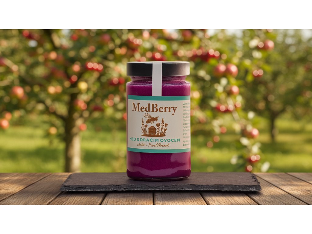 Med s dračím ovocem je unikátní spojení kvalitního pastovaného květového medu (95 %) a lyofilizovaného dračího ovoce (pitahaya) (5 %). Tento produkt pochází přímo od včelaře, bez umělých přísad či konzervantů. Díky šetrné lyofilizaci si dračí ovoce zachovává svou exotickou chuť, barvu a cenné živiny.