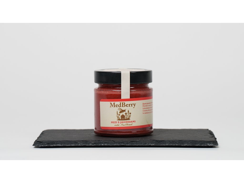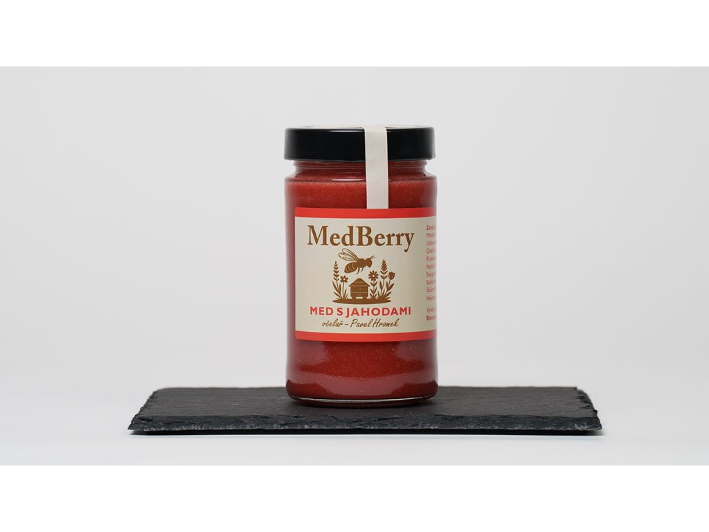 Med s jahodami je jedinečná kombinace kvalitního pastovaného květového medu (95 %) a lyofilizovaných jahod (5 %). Tento produkt pochází přímo od včelaře, bez umělých přísad či konzervantů. Díky šetrné lyofilizaci si jahody zachovávají svou přirozenou chuť, vůni i vitamíny.